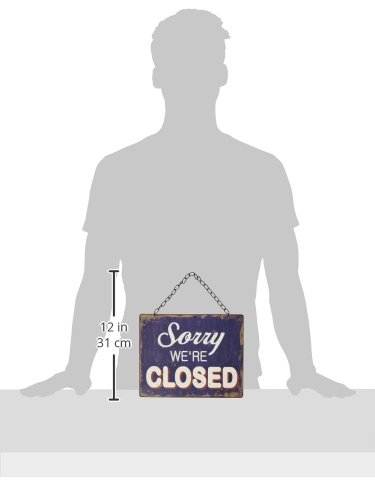 Creative Co-op Tin Come in We’re Open & Sorry We’re Closed Two Sided Sign with Chain for Hanging, Navy Blue
