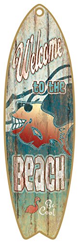 SJT ENTERPRISES, INC. Welcome to The Beach 5″ x 16″ Surfboard Wood Plaque Sign (SJT41315)