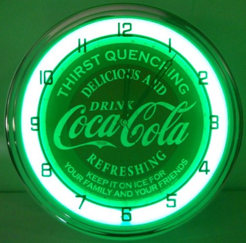 Coca Cola 15″ Neon Wall Clock Lighted Distressed Sign Soda Pop Shop Coke Bottle Logo Vintage Retro Style Green