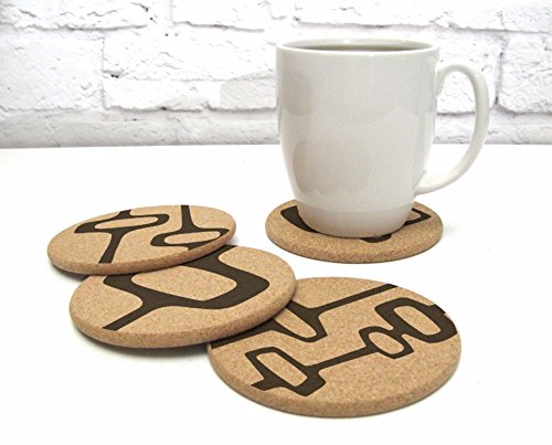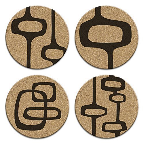 Mid Century Modern Retro Abstract Art Cork Drink Coaster Gift Set of 4