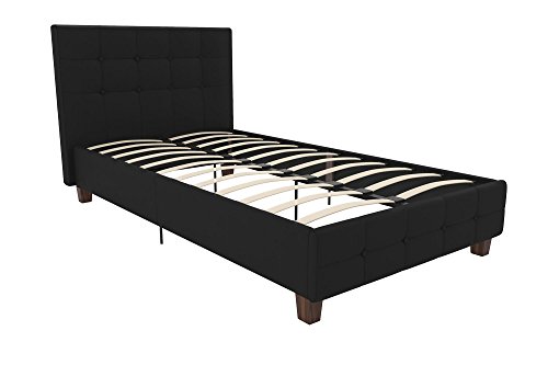 DHP Rose Upholstered Platform Bed, Black Linen, Twin