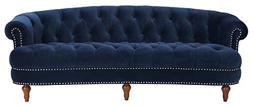 Jennifer Taylor Home La Rosa Collection Modern Victorian Hand-Tufted Upholstered Velvet Sofa with Rolled Back and Nail Head Trim, Navy Blue