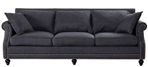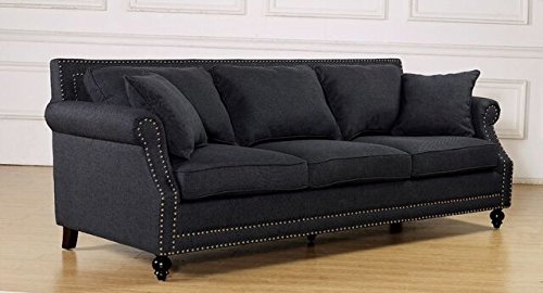 Designed With A Modern Sensibility: This Sofa In The Camden Collection Includes A Classic Shape and Design With A Grey Linen Upholstery With Complimentary Black Finished Birch Legs and A Hand-Applied Nailhead Trim That Create A Sofa That Makes A Lasting Impression.