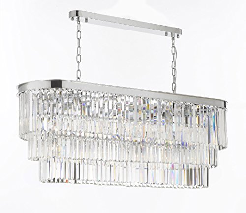 Unfashionable Odeon Glass Fringe Rectangular Chandelier Chandeliers Lighting fixtures Chrome Finish