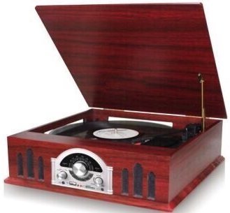 TechPlay TCP2916 WD, 3 speed turntable, AUX in, USB/SD MP3 Encoding and playback , Retro style classic analog radio, RCA line out, Auto stop, Cherry Wood Color