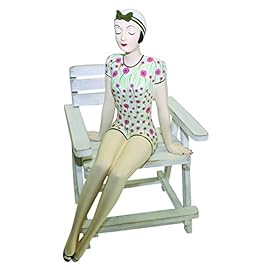 MY SWANKY HOME Retro Bathing Beauty Shelf Sitter Statue | 1920s Swim Suit Figurine Floral Flowers Poppies