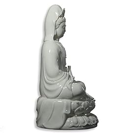 ICNBUYS Vintage Guanyin Buddha Statues Porcelain White Meditation on Lotus Home Decoration Height 12″
