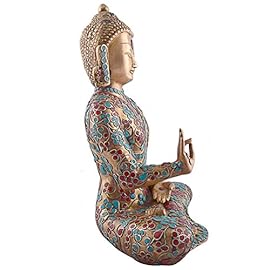 1 Feet Tall Tibetan Large Big Buddha Statue,Vintage Coral Turquoise Gemstones Hand Work Bronze Buddhist Sakyamuni Blessing Buddha Sculpture