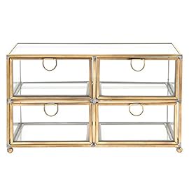 MyGift Vintage Clear Glass & Brass Metal 4 Drawer Display Box/Dresser Top Jewelry Storage Organizer