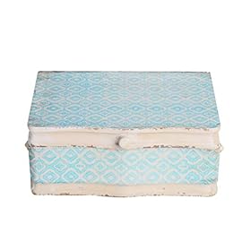 NIKKY HOME Vintage Decorative Wood Case Keepsake Storage Box with Handle and Hinged Lid, 13 x 9.1 x 4.9 Inches, Pale Blue and Ivory