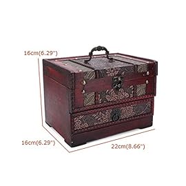 Coolrunner Handmade Retro European Wooden Box Vintage Wooden Treasure Case Decorative Trinket Jewelry Storage Box Old Memory (1)