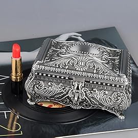 Feyarl Vintage Jewelry Trinket Box Rectangle Box Metallic Floral Engraved Earring Ring Chest Case Necklace Organzier Storage Box Wedding Brithday Gift