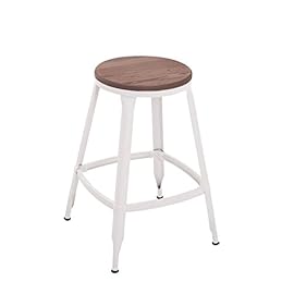 HomCom 25” Counter Height Industrial Modern Metal Barstool – Set of 2 (Round, White)