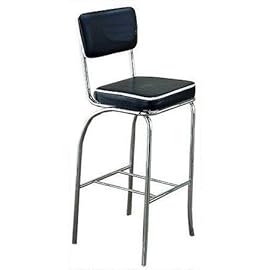 Richardson Seating Swivel Bar Stool with Back Chrome Frame and Seat, Black, 30″