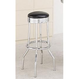 Richardson Seating Retro 1950s Backless Swivel Bar Stool with Black Seat – 24″