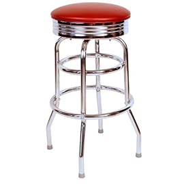 Richardson Seating Double Ring Swivel Bar Stool with Back Chrome Frame and Seat, Wine, 30″