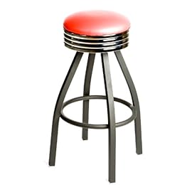 Oak Street Manufacturing SL1137-RED Counter Height Black Powder Coat Swivel Barstool Frame with Red Retro Top