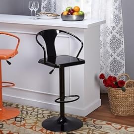 Contoured Back Rest Gas Lift Pole And Lever Adjustments Retro Max Adjustable Height Bar Stool, Black