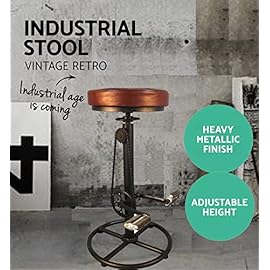 Topower Vintage DIY Bar Stool PU Soft seat & Iron Pedal Retro Industrial Height Adjustable Bicycle Wheel Design bar Chair