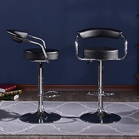 BELLEZE Set of (2) Bar Stool with Armest Adjustable Hydraulic Height Stools, Black