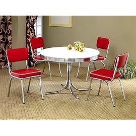 Coaster Home Furnishings 5pcs Retro White Round Dining Table & 4 Red Chairs Set
