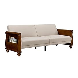 DHP Frisco Upholstered Splitback Sofa Sleeper with Honeywood Arms with Beige Chenille