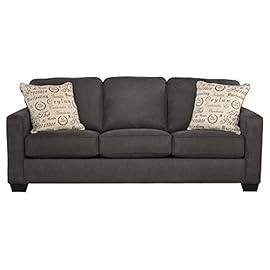 Signature Design by Ashley – Alenya Queen Size Sleeper Sofa w/ 2 Throw Pillows, Charcoal