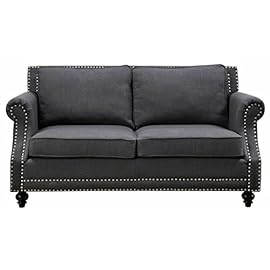 Tov Furniture The Camden Collection Contemporary Linen Upholstered Living Room Sofa with Nailhead Trim, Grey