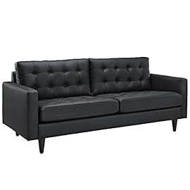 Modway Empress Mid-Century Modern Upholstered Leather Sofa In Black