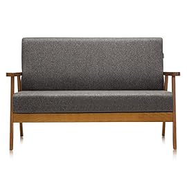 Krei Hejmo Vintage Brown Wooden Low-Seat Armchairs Sofa Couch with Fabric (Two-Seater, Vintage Brown Wood/Dim Gray Fabric)