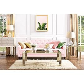 Novogratz 9 2020657N Elegant Vintage Tufted Slim Sloped-Arms Sofa Sleeper II, Pink Velour